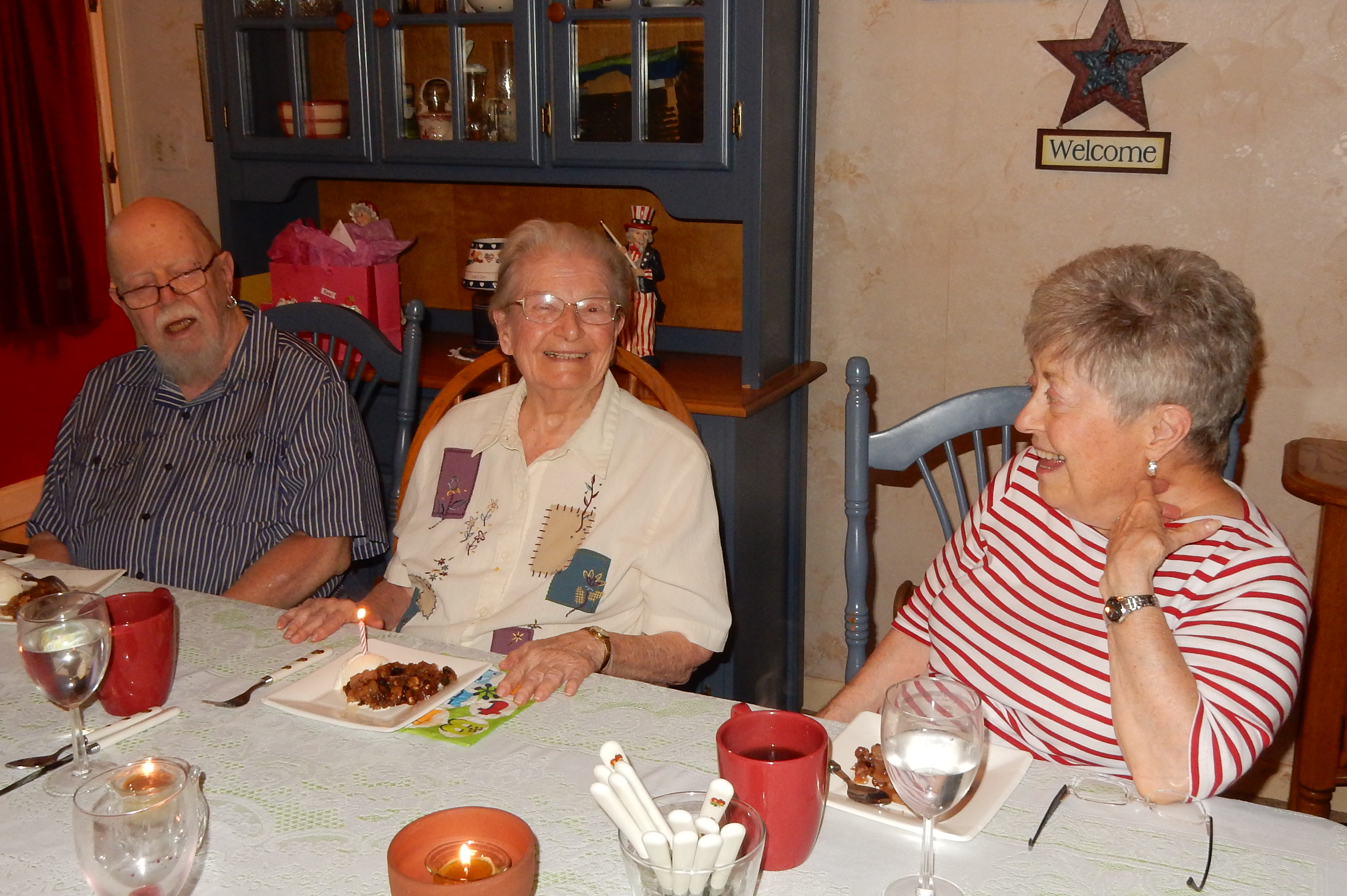 Louise, 92 birthday at Marilyn Bell's house. July 22, 2016 with Paul and Pat.